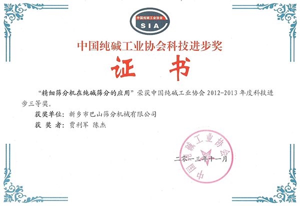 純堿行業(yè)進步三等獎