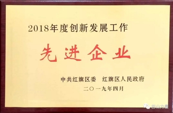 2019年4月22日,在紅旗區(qū)開展的推動經(jīng)濟高質(zhì)量發(fā)展工作大會上,巴山公司獲得“2018年度創(chuàng)新發(fā)展工作**企業(yè)”榮譽稱號,并獲得科技政策專項獎勵獎金。這是繼公司通過高新技術(shù)企業(yè)認定、新鄉(xiāng)市工程技術(shù)中心認定的又一榮譽。