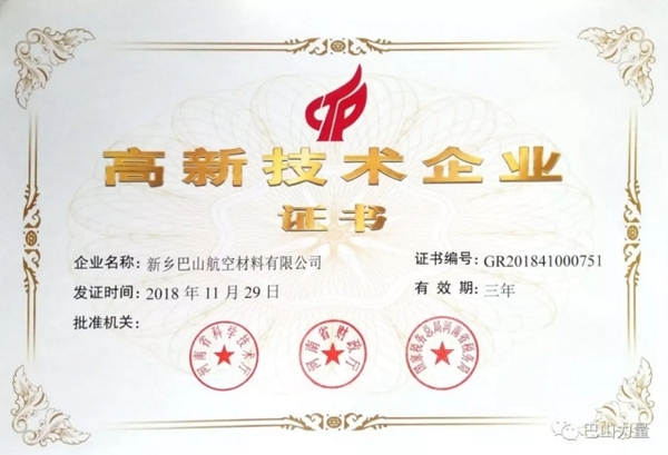 2018年11月,巴山公司憑借堅實的技術(shù)實力再一次通過國家“高新技術(shù)企業(yè)認定”。這是自2009年巴山公司開始進行高新技術(shù)企業(yè)認定工作以來,第四次通過高新技術(shù)企業(yè)認定。