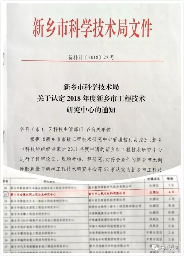 2018年9月,經(jīng)過評審論證、專家現(xiàn)場審查,巴山公司研發(fā)中心通過“新鄉(xiāng)市工程技術(shù)研究中心”認定。這是巴山公司在項目研發(fā)、產(chǎn)品試驗、研發(fā)團隊建設等方面具備較高水平的又一次證明。